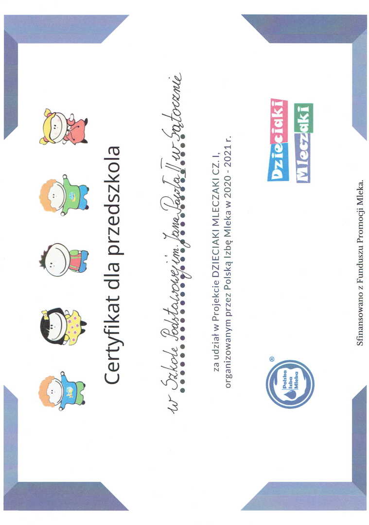 Oddział przedszkolny brał udział w Projekcie "Dzieciaki Mleczaki cz.1" organizowanym przez Polską Izbę Mleka w 2020-2021.