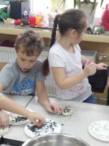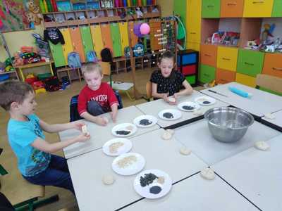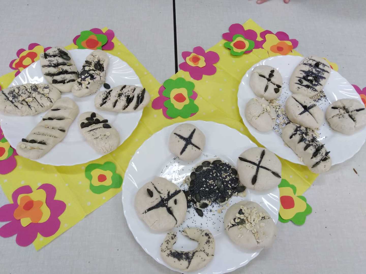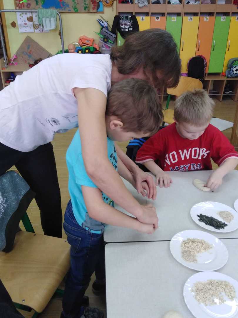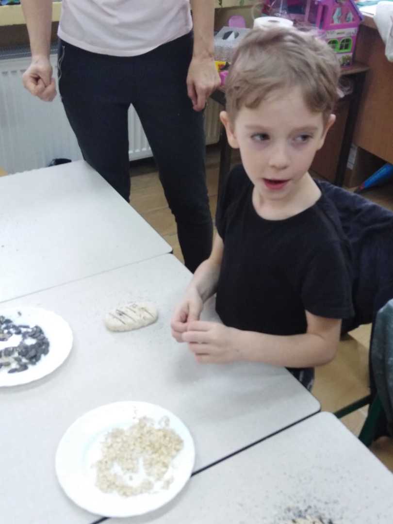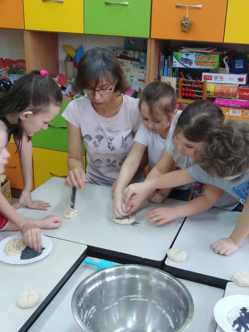 Na czwartkowych zajęciach plastycznych tj. 4 .03. 2021 dzieci obejrzały film ''Od ziarenka do bochenka'', poznając przy tym pracę piekarza i proces powstawania chleba. Było to zachętą, aby samemu coś zrobić. Dzieci miały możliwość rozwijania sprawności manualnej poprzez wyrabianie masy solnej oraz nadawanie odpowiednich kształtów swym ''wypiekom''. Lepiły bułeczki, chlebki i rogalika a następnie ozdabiały różnymi nasionami, które też można było spróbować. Tak naprawdę była to po prostu fajna zabawa.