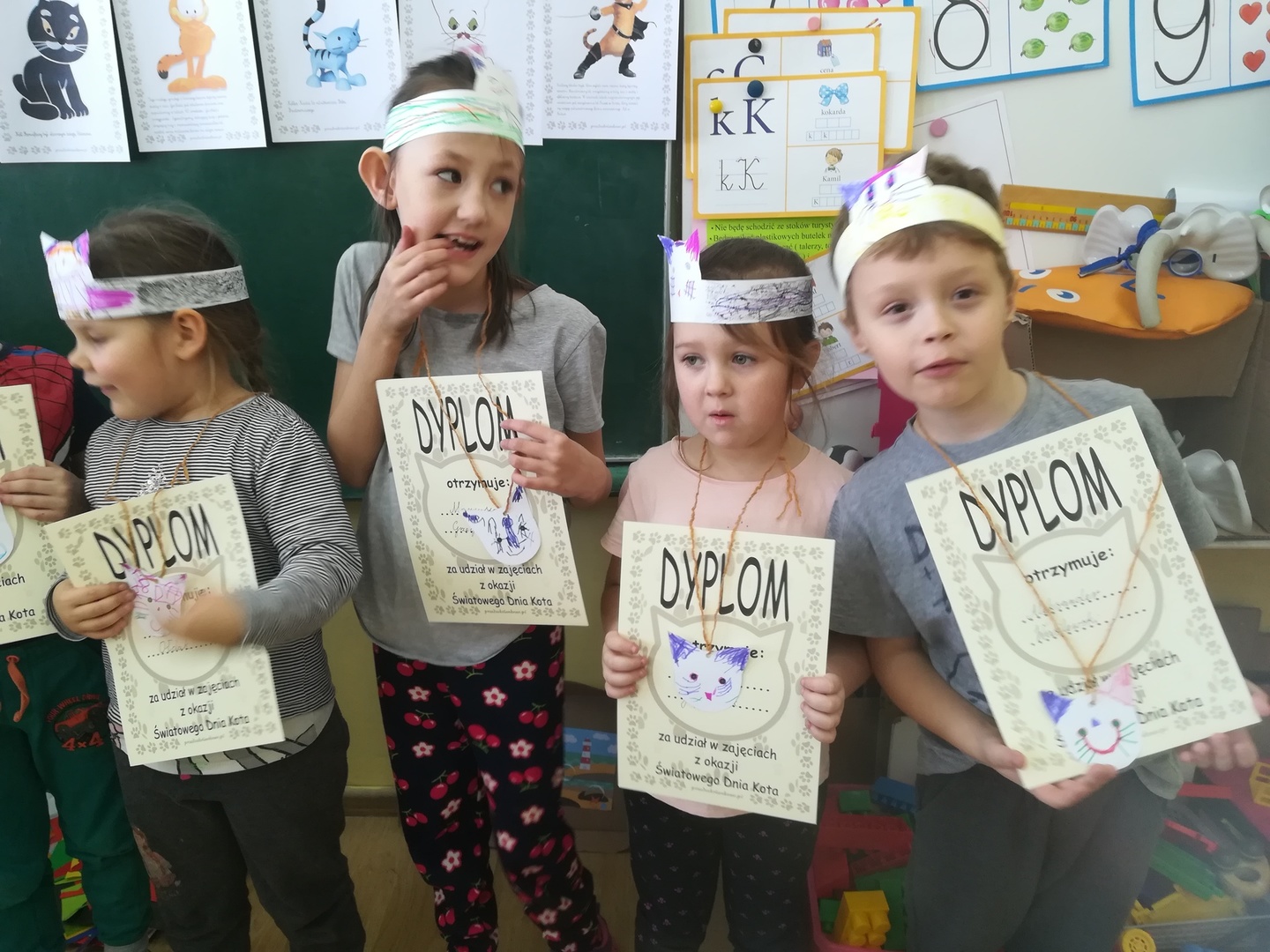 Na zakończenie Dnia Kota otrzymały pamiątkowe dyplomy. To był dzień pełen kocich wrażeń.