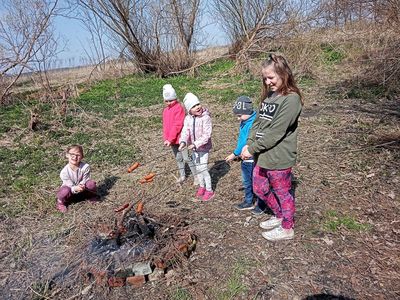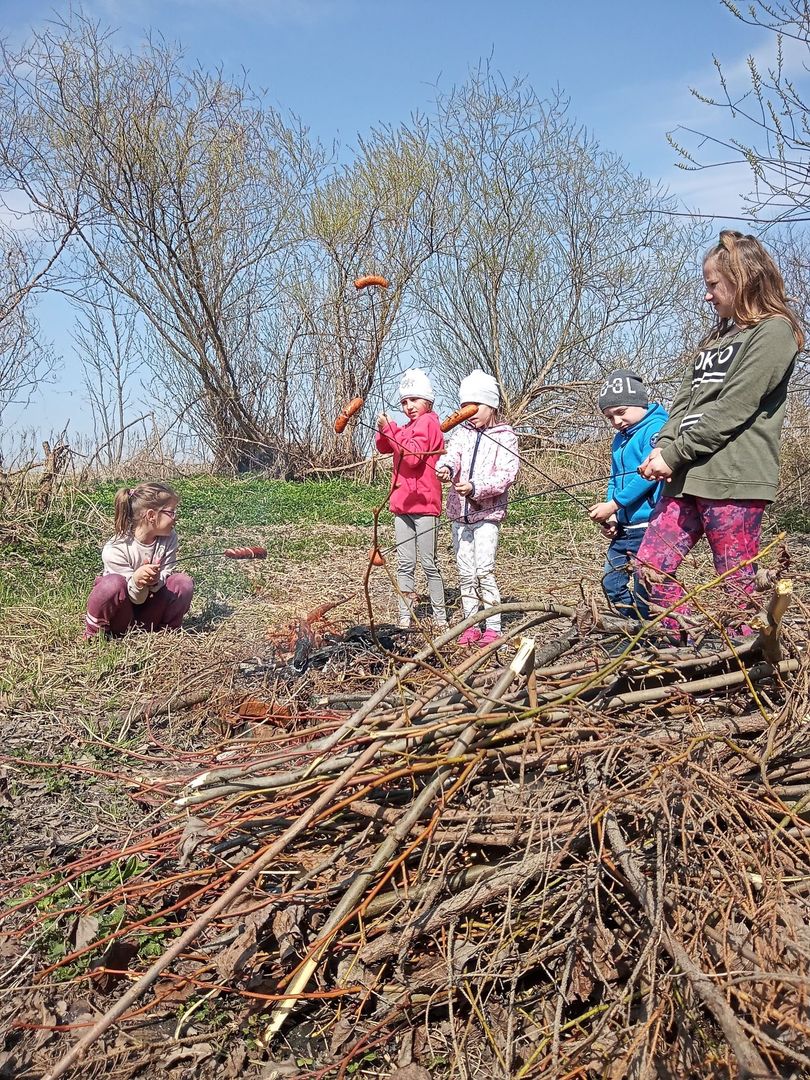 . Dzieci wspaniale posprzątały skarpę, a następnie posegregowały śmieci, umieszczając je w odpowiednich pojemnikach. W nagrodę babcia przygotowała ognisko z kiełbaskami. Było wesoło i smacznie, bo jak wiadomo po pracy posiłek smakuje najlepiej! A jeszcze w czystej okolicy, to już rewelacja! Brawa