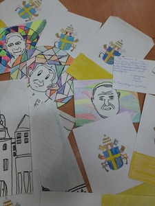 Udało mi się nawiązać kontakt z polonistkami z różnych szkół z terenu Polski i przystąpić do akcji wymiany korespondencji pomiędzy szkołami noszącymi zaszczytne imię Jana Pawła II w ramach obchodów Dnia Patrona.