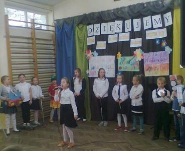 Najmłodsi uczniowie zaprezentowali się z jak najlepszej strony. Były śpiewy, tańce i występy teatralne. Wszyscy pracowanicy szkoły otrzymali kartki z życzeniami wykonane przez wychowanków Pani Doroty Sańko i Doroty Żolik.