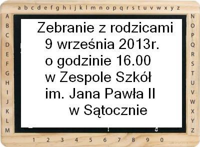 Zebranie z rodzicami Serdecznie zapraszamy na zebranie z rodzicami, które odbędzie się 9 września 2013r. o godzinie 1600 w Zespole Szkół im. Jana Pawła II w Sątocznie. Zdjęcia Zobacz również Dni rodziny Zakończenie roku szkolnego Rozpoczęcie roku szkolnego 2013/2014 Zebranie z rodzicami Plan lekcji Kalendarz imprez szkolnych 06 września 2013 Aktualności Wydrukuj Udostępnij Wyświetlono: 965