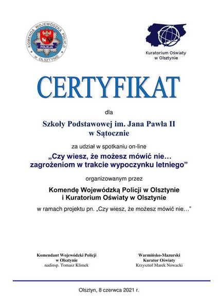 29 czerwca 2021 Aktualności „Załóż wygodne buty, masz do przejścia całe życie…” Pod takim hasłem odbyło się uroczyste zakończenie roku szkolnego w Szkole Podstawowej im. Jana Pawła II w Sątocznie. W piątek 25 czerwca 2021 r. o godz. 8.00 cała społeczność szkolna udała się do kościoła... Czytaj więcej